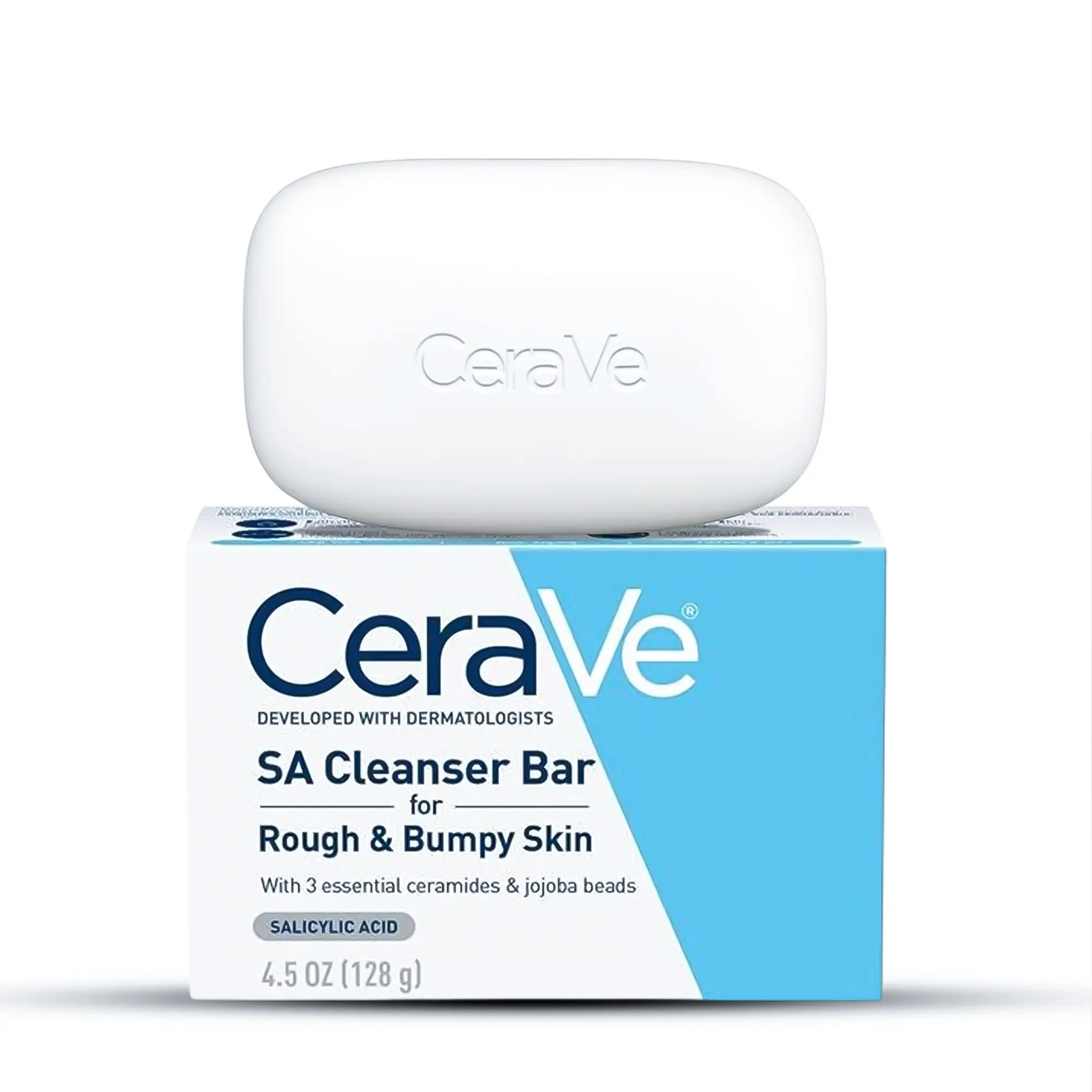 CeraVe SA Cleansing Bar for Rough & Bumpy Skin (128 g) is a gentle, soap-free cleanser that helps smooth rough and uneven skin. Formulated with salicylic acid and jojoba beads, it gently exfoliates dead skin cells while cleansing without drying the skin. Enriched with ceramides, it helps support the skin’s natural barrier and leave skin softer and smoother. Non-comedogenic and suitable for daily use.