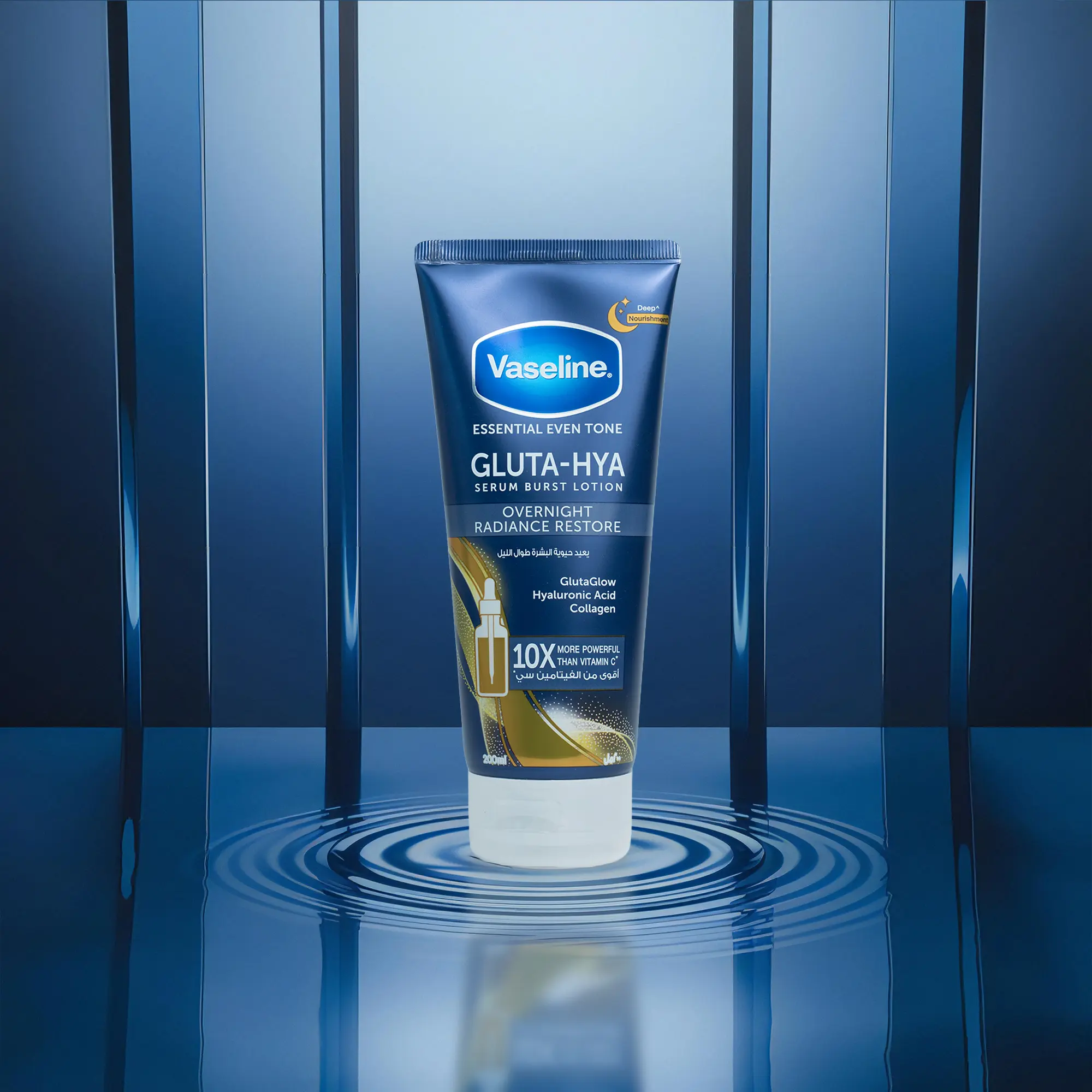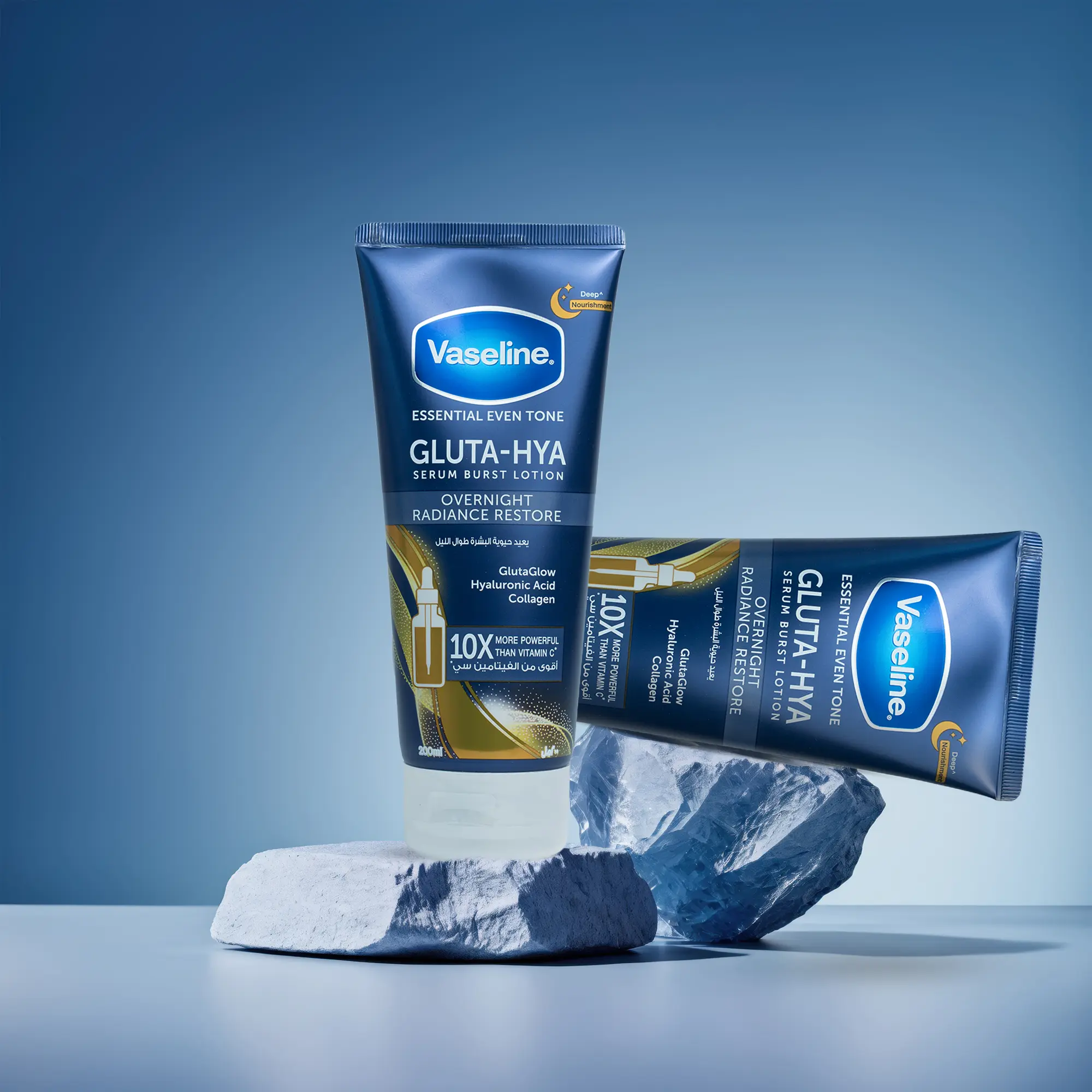 Vaseline Gluta-Hya Overnight Radiance Restore Serum Burst Lotion is an advanced overnight body lotion designed to reveal visibly brighter, smoother, and plumper-looking skin by morning. Powered by GlutaGlow™ technology, known for its high antioxidant performance, and hyaluronic acid for intense hydration, this serum-burst formula works overnight to improve radiance and restore moisture balance.